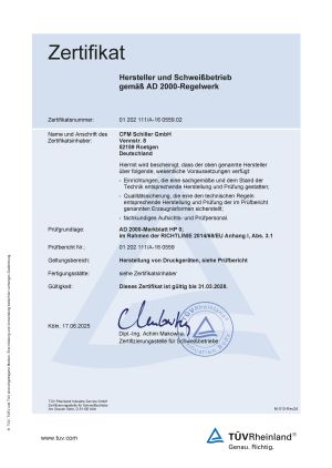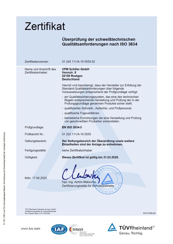 Das Qualitäts- und Umweltmanagement von CFM Schiller basiert auf den Forderungen der Normen ISO 9001:2015 und ISO 14001:2015 und wurde als Werkzeug zur Durchführung der Qualitätspolitik entwickelt und besteht seit 2008.