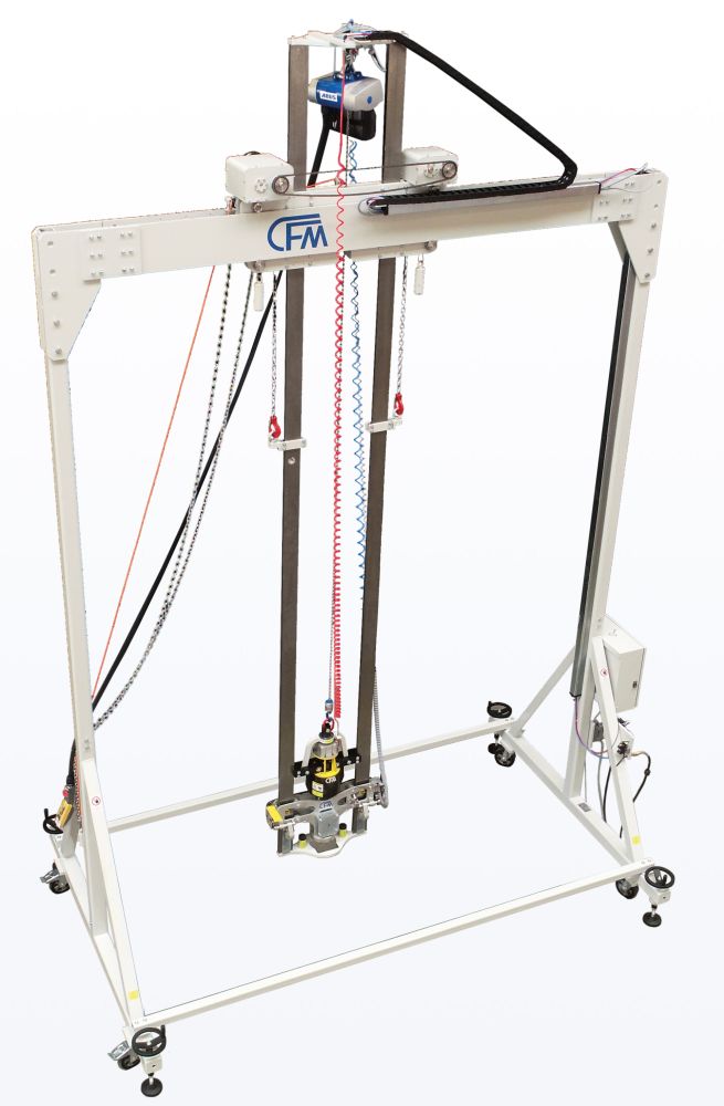 Cette tour de chute se compose de deux colonnes verticales et d'une traverse sur laquelle est monté un chariot mobile. Cela permet d'atteindre facilement n'importe quelle position d'essai.